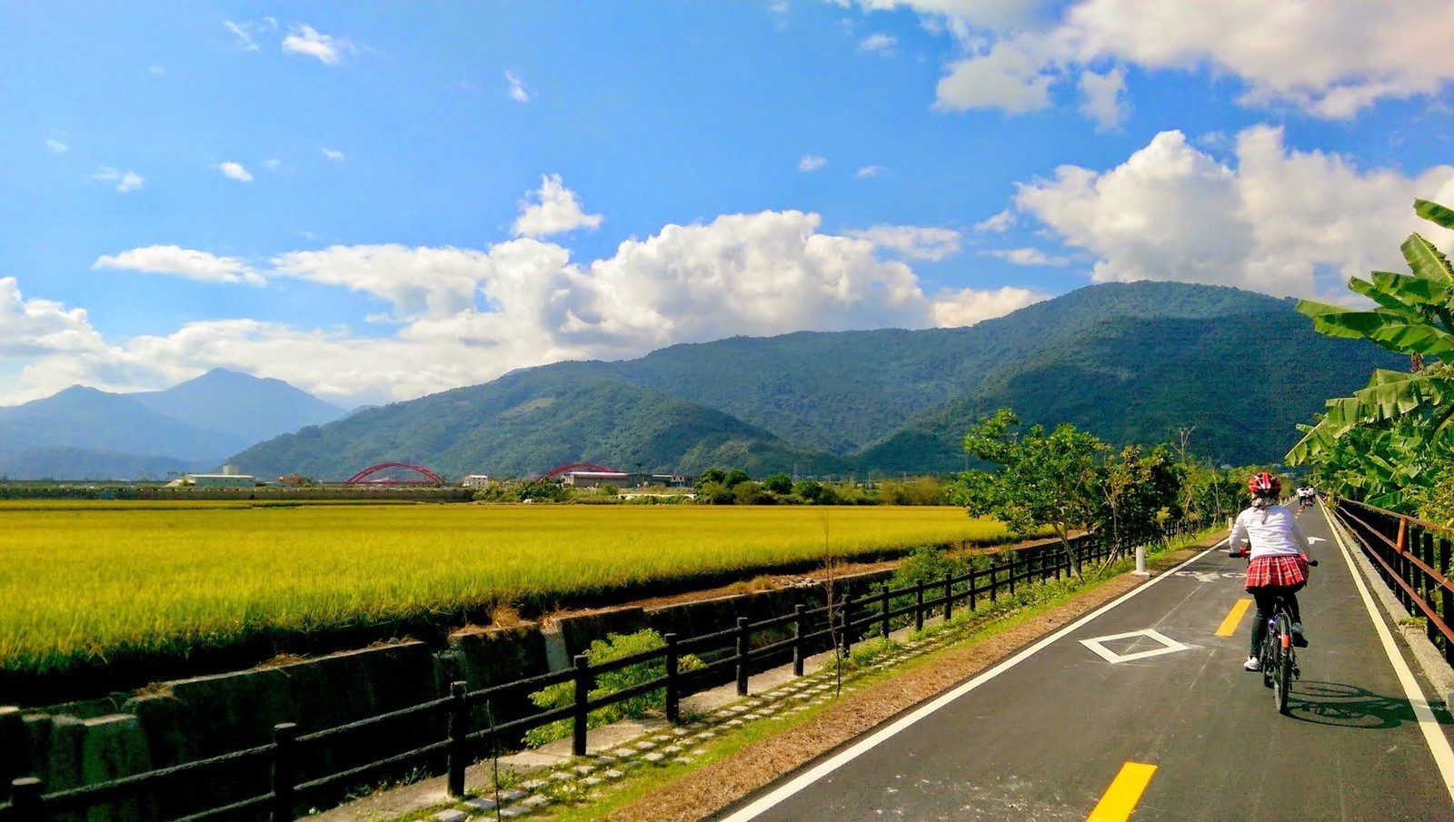 D8(2017/10/07星期六):台東金崙至池上騎乘 89 km ●行程:金崙→太麻里→知本→卑南→初鹿→鹿野→瑞源→關山→池上。 ●景點:太麻里曙光園區、華原海灣、十股綠色隧道口、脫線牧場、瑞源綠色隧道、關山米國學校、池上金城武樹、伯朗大道、池上四季花海。 ●餐食:早餐/旅館享用 午餐/脫線牧場美食 晚餐/池上風味餐 ●住宿:池上-牧野渡假村或同級